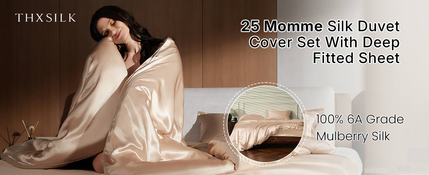 25 Momme Heavyweight Mulberry Silk Duvet Cover and Fitted Sheet Set