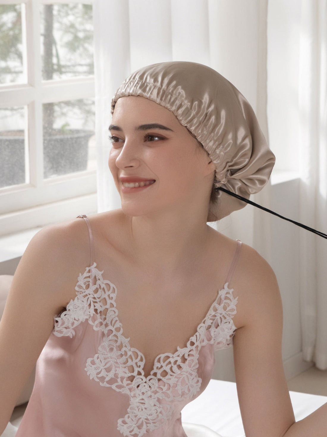 Pure Silk Sleep Bonnet With RibbonsPure Silk Sleep Bonnet With Ribbons- Regular price
