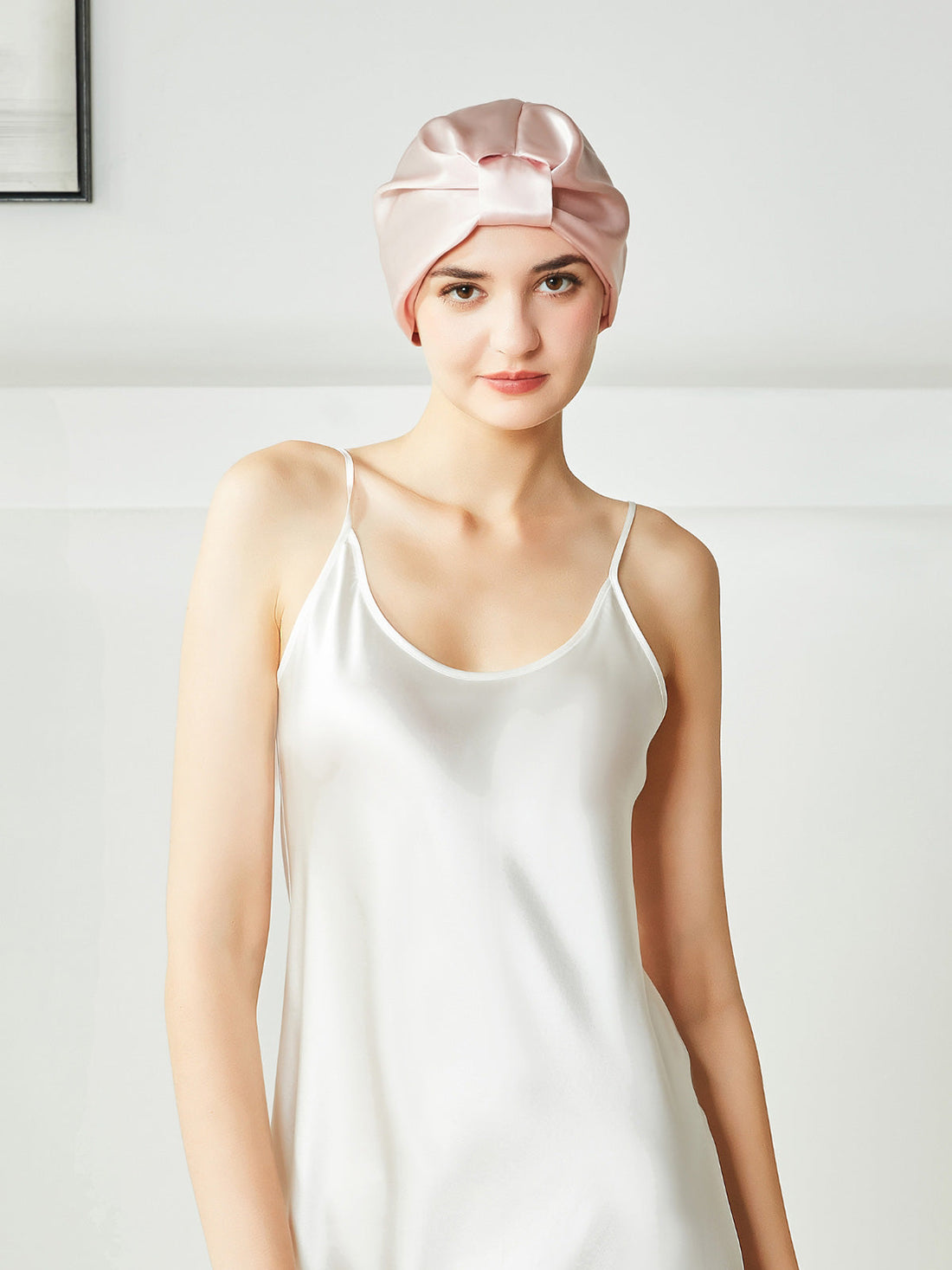 Pure Silk Sleep Bonnet With RibbonsPure Silk Sleep Bonnet With Ribbons