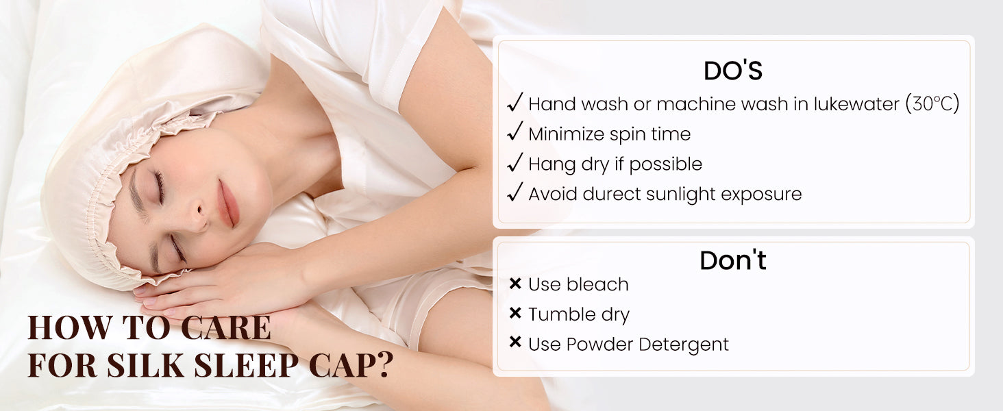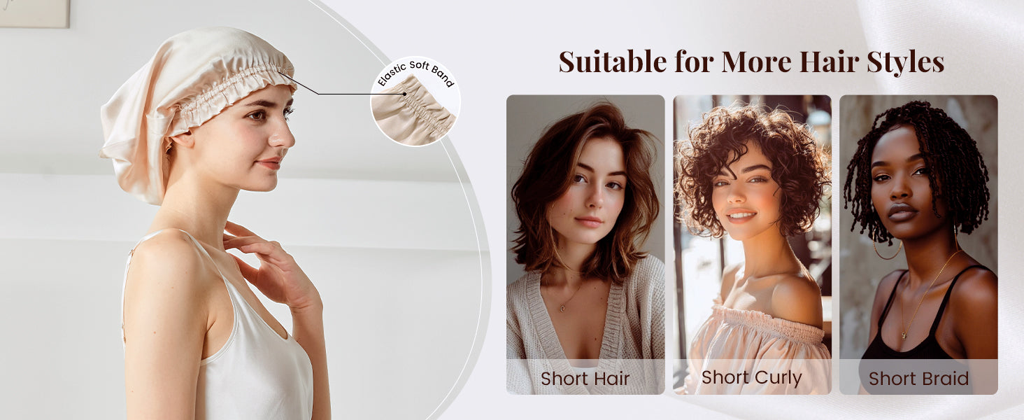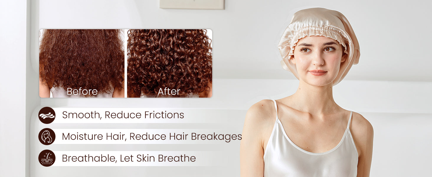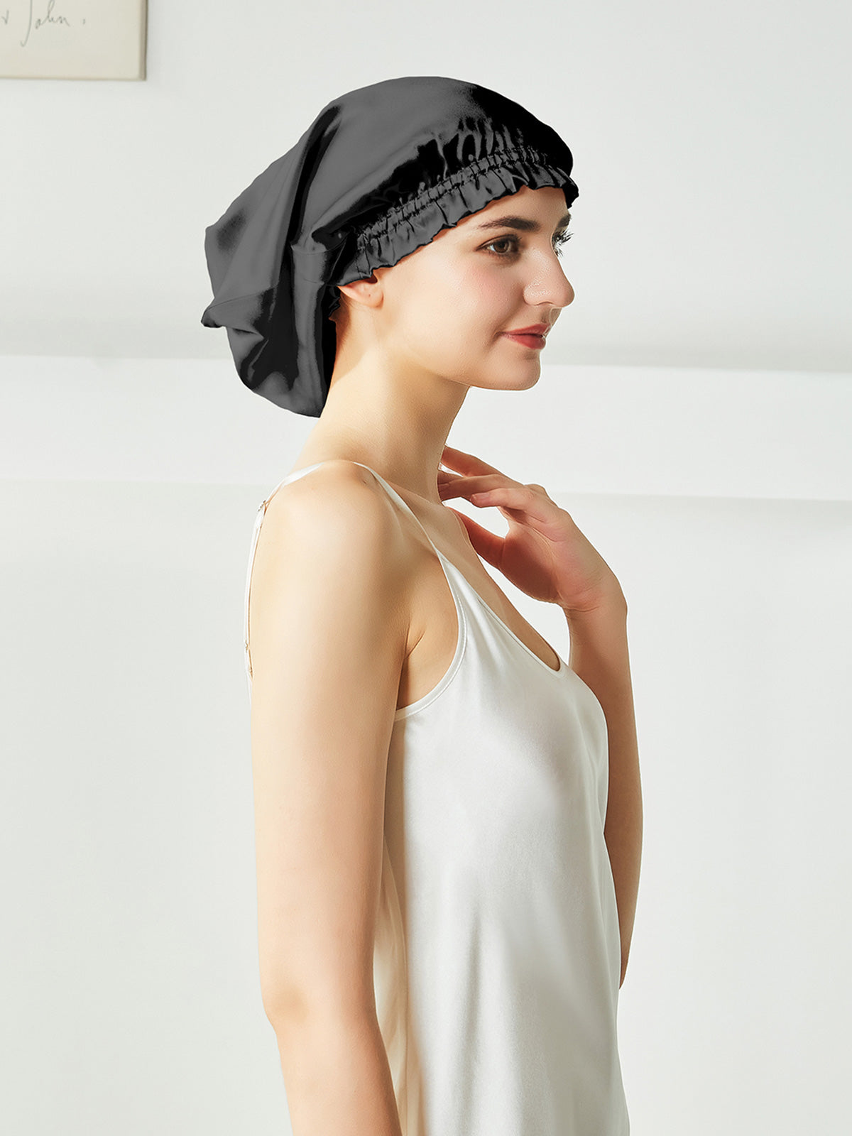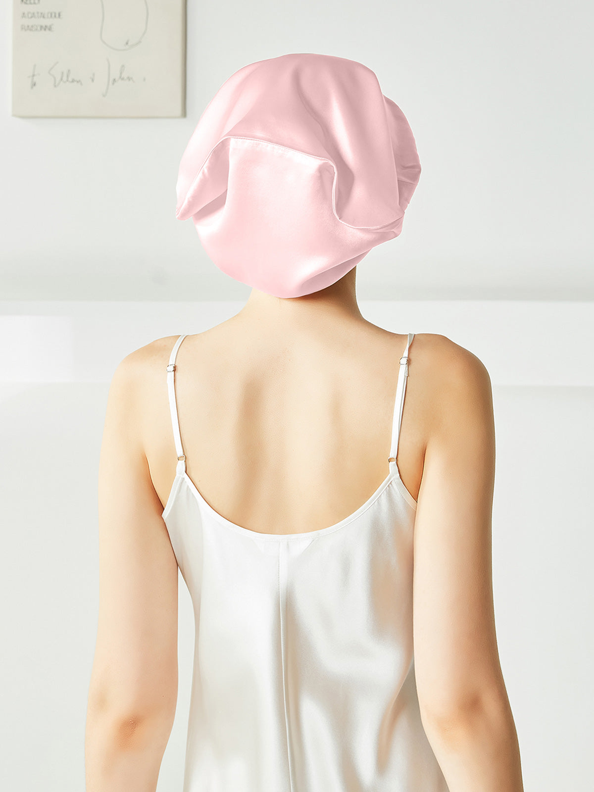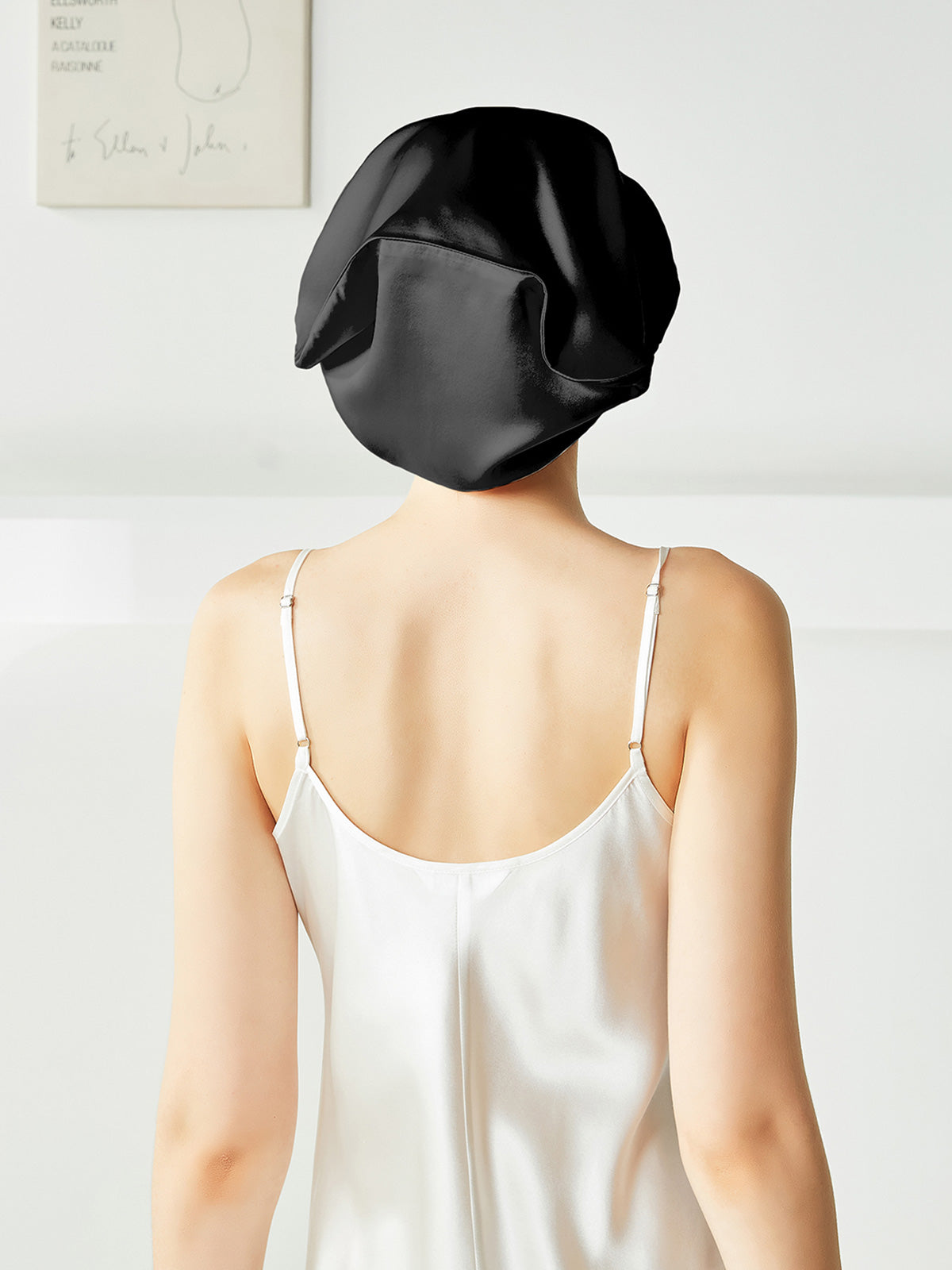 This is a pure silk sleep bonnet. You can be put your hair in the nightcap very relaxedly, instead of being folded on the head like the short nightcap, it can be easily worn on the head before going to bed. Silk can effectively keep the hair properly hydrated, not frizzy, and is beneficial for the hair.
