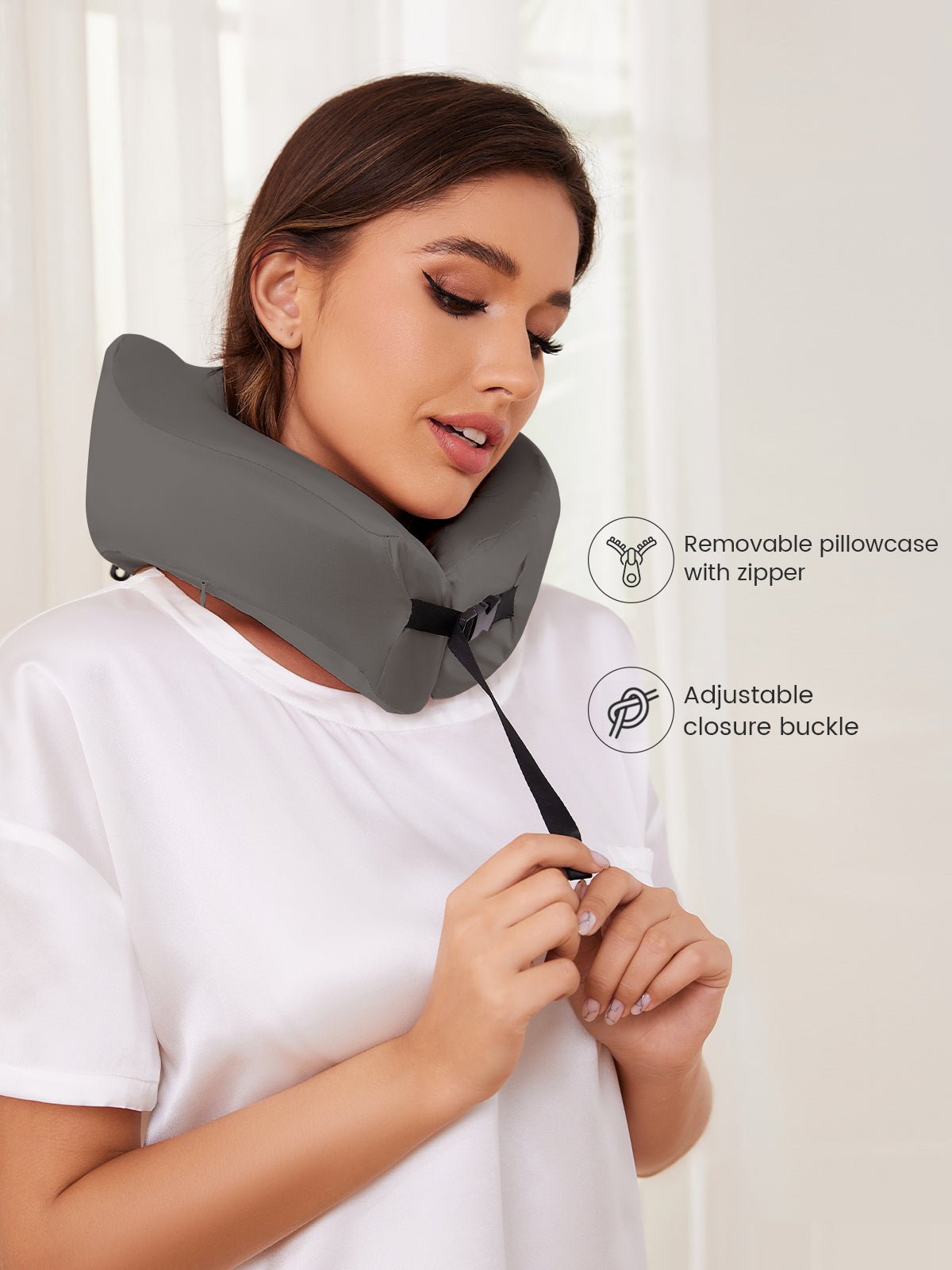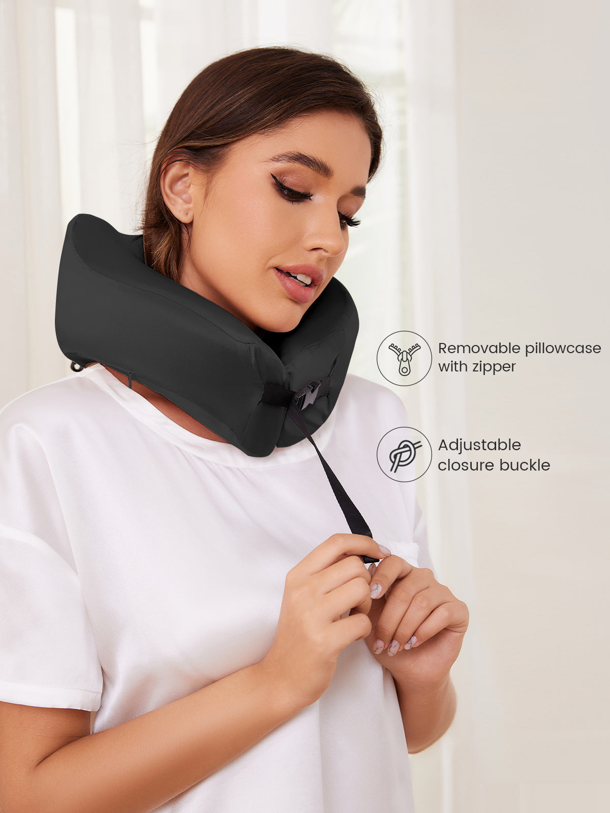 Intelligently conforms to the shape of your head and neck, providing targeted support. The memory foam evenly distributes pressure, ensuring a pain-free and tension-free travel experience.