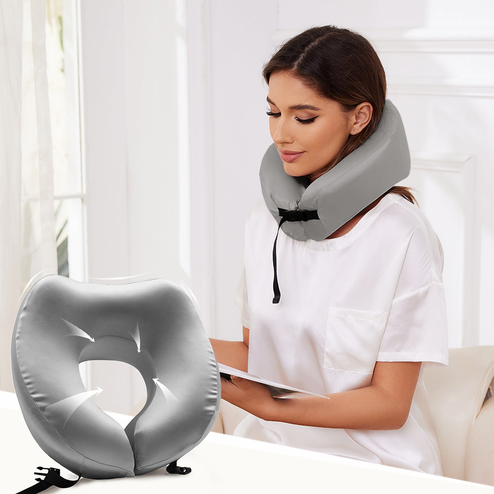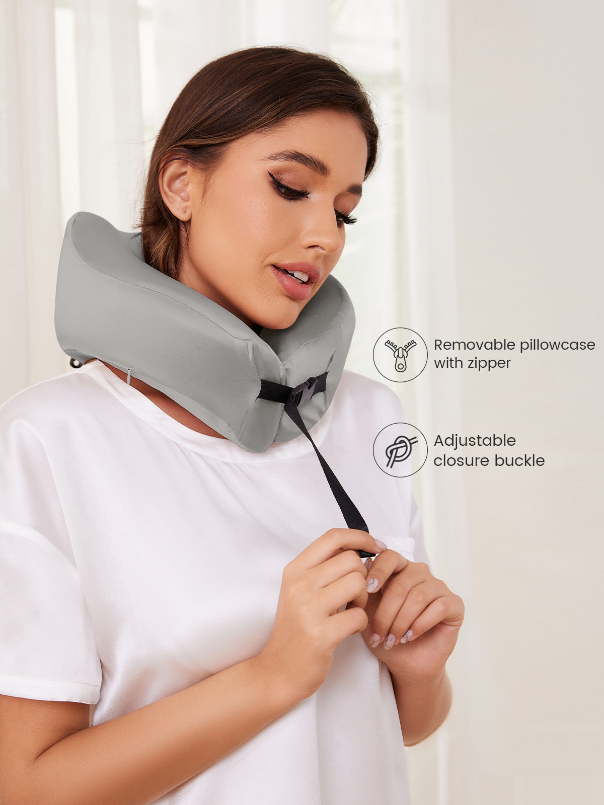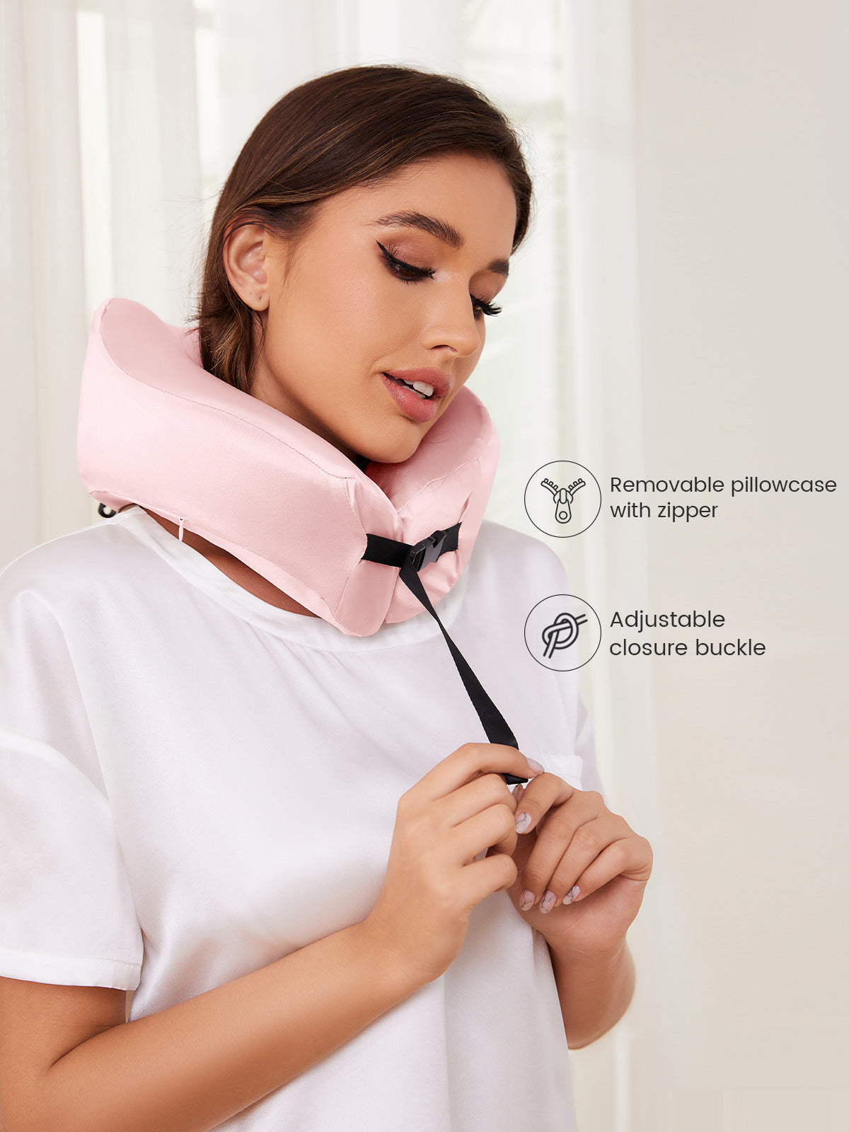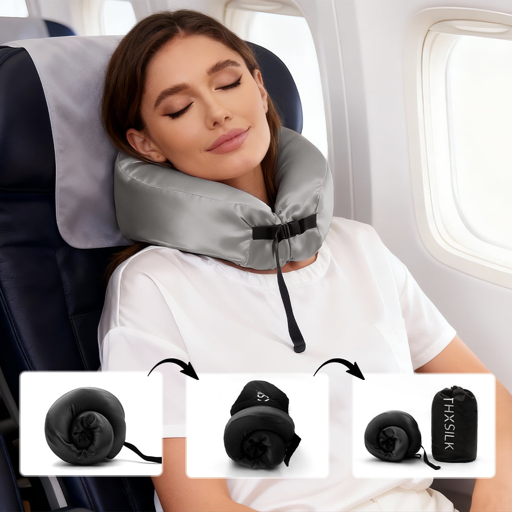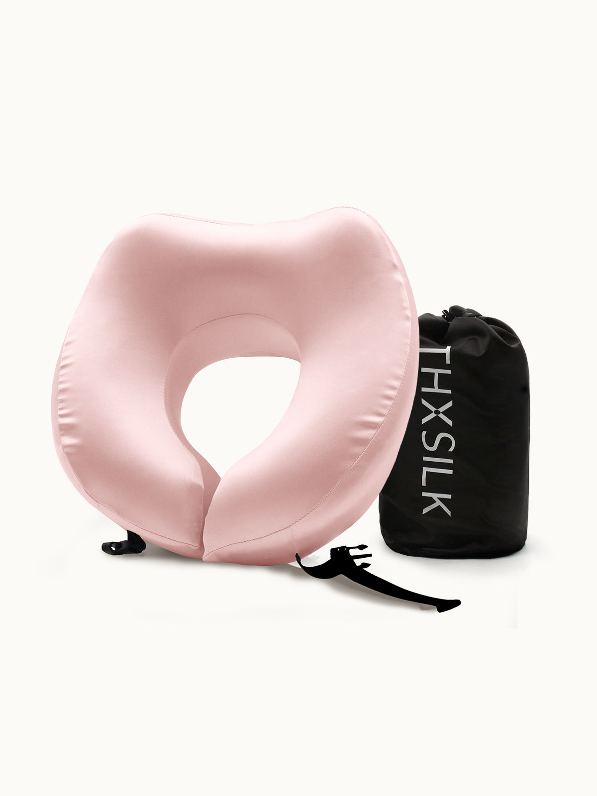 Silk Travel Neck Pillow with M-Shape & Memory Foam Support