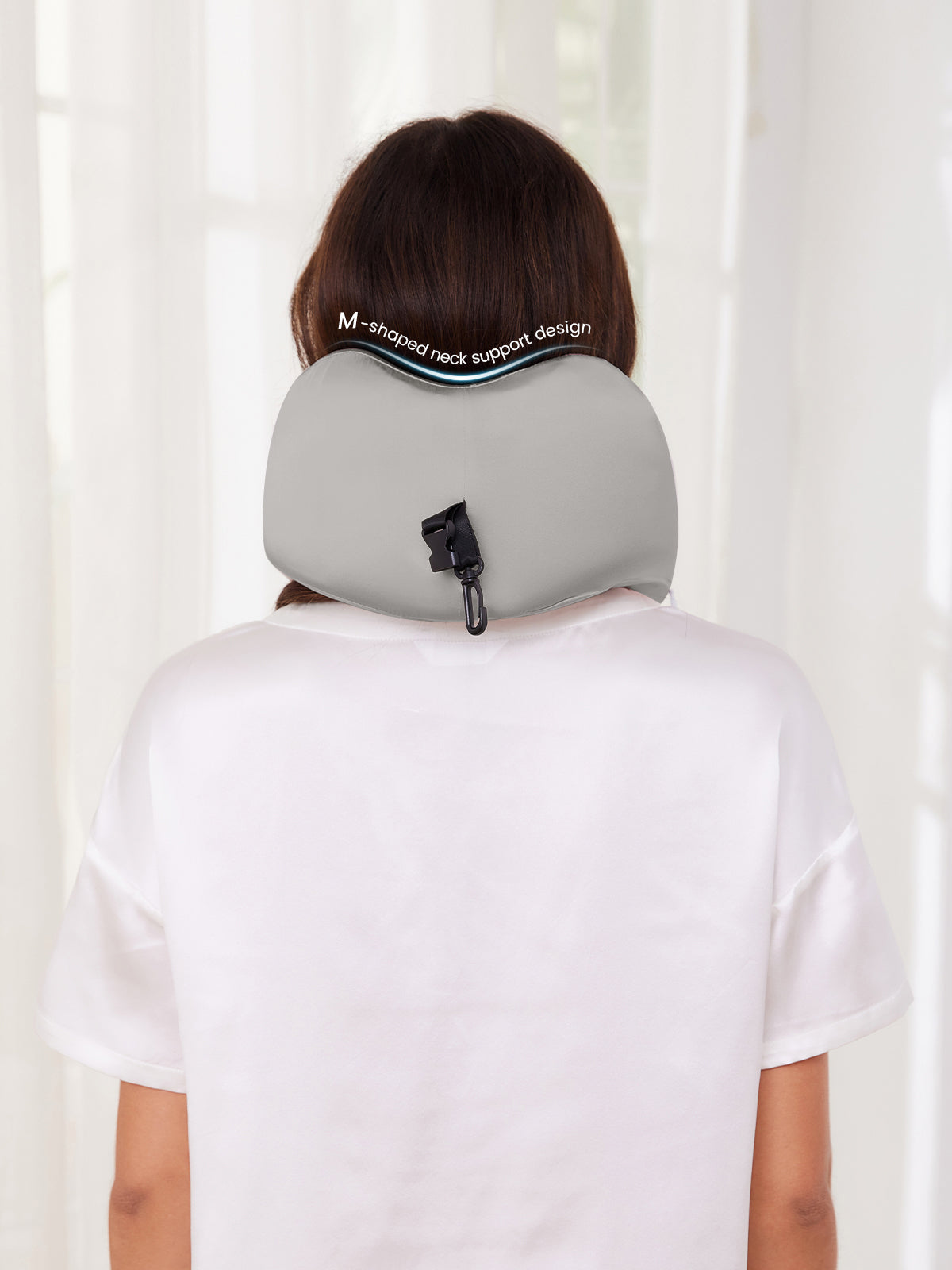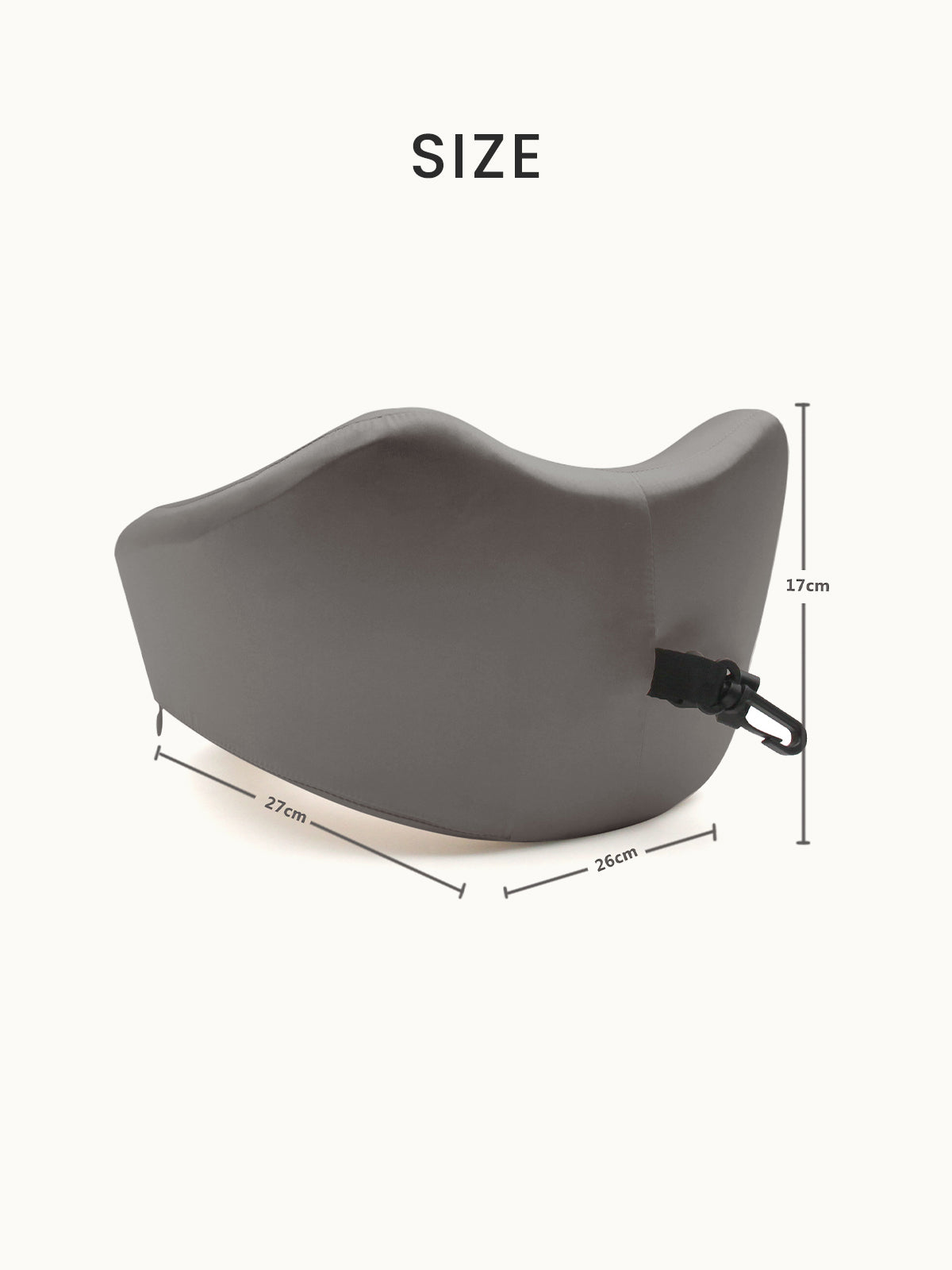 The ergonomic M-shaped neck curve provides full, wrap-around support. Combined with silk and memory foam, this pillow offers all-around balance and stable support on long journeys.