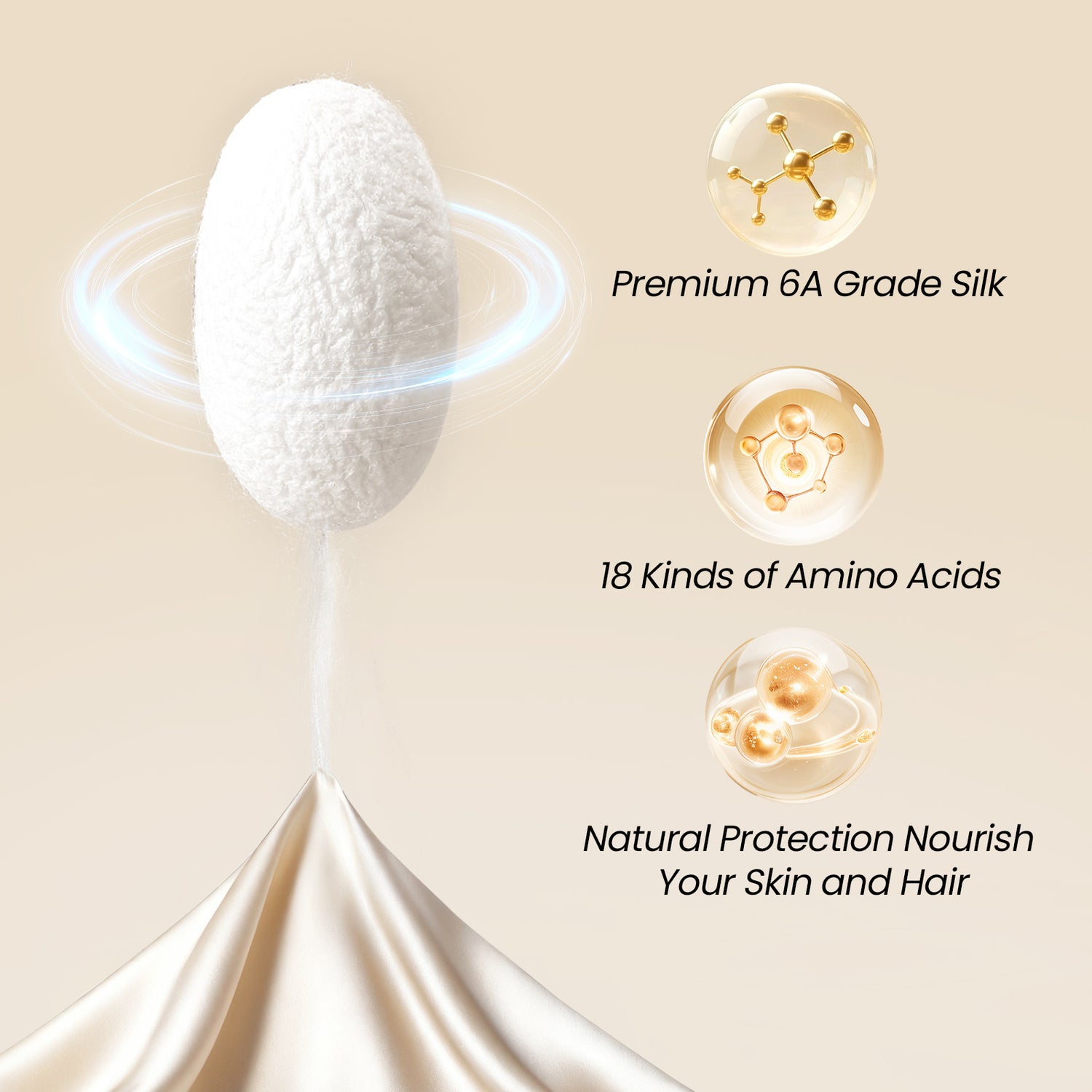 Silk is more than a fabric; it's a natural protein fiber brimming with amino acids. These essential nutrients are akin to those found in your skin's own structure. When you rest on our silk pillowcase, it's like giving your skin a gentle, all-night treatment, helping to maintain natural moisture balance and promoting a softer, smoother complexion.