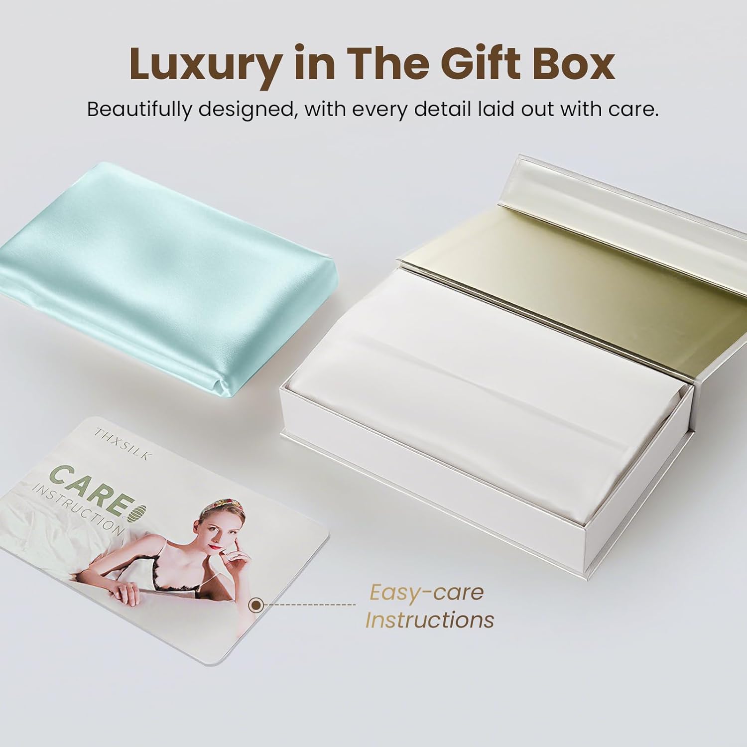 THXSILK 25 momme silk pillowcases are 100% pure mulberry silk. The high-quality Grade 6A mulberry silk pillowcases will help asthma and allergy sufferers, suitable for sensitive sleepers. Our 25mm silk pillowcases contain almost 20% more silk than the 22mm. They are washable and easy to care for. Every detail of our pillowcase shows the pursuit of the ultimate in luxury life.