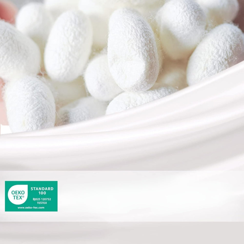 Indulge in the plush smoothness of 25-momme silk—a touch of decadence that still feels surprisingly light. Draped in breathable, hypoallergenic silk, you’ll stay cool in summer and warm in winter, all while enjoying its cloud-like softness. No bulk, no friction, just pure silk serenity. The ultimate upgrade for a seamless night’s rest.