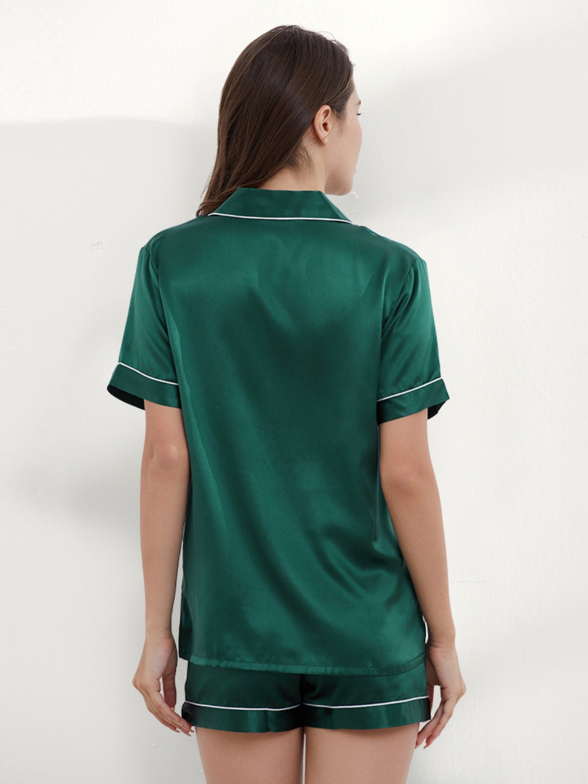 The luxurious texture makes you sleep enjoyable enough all night long. The beautiful colors and simple home style makes you fall in love with this short silk pajamas set. The short sleeves are also designed to regulate your body temperature. This silk pajamas set is designed for all women.