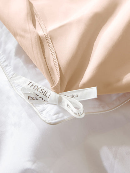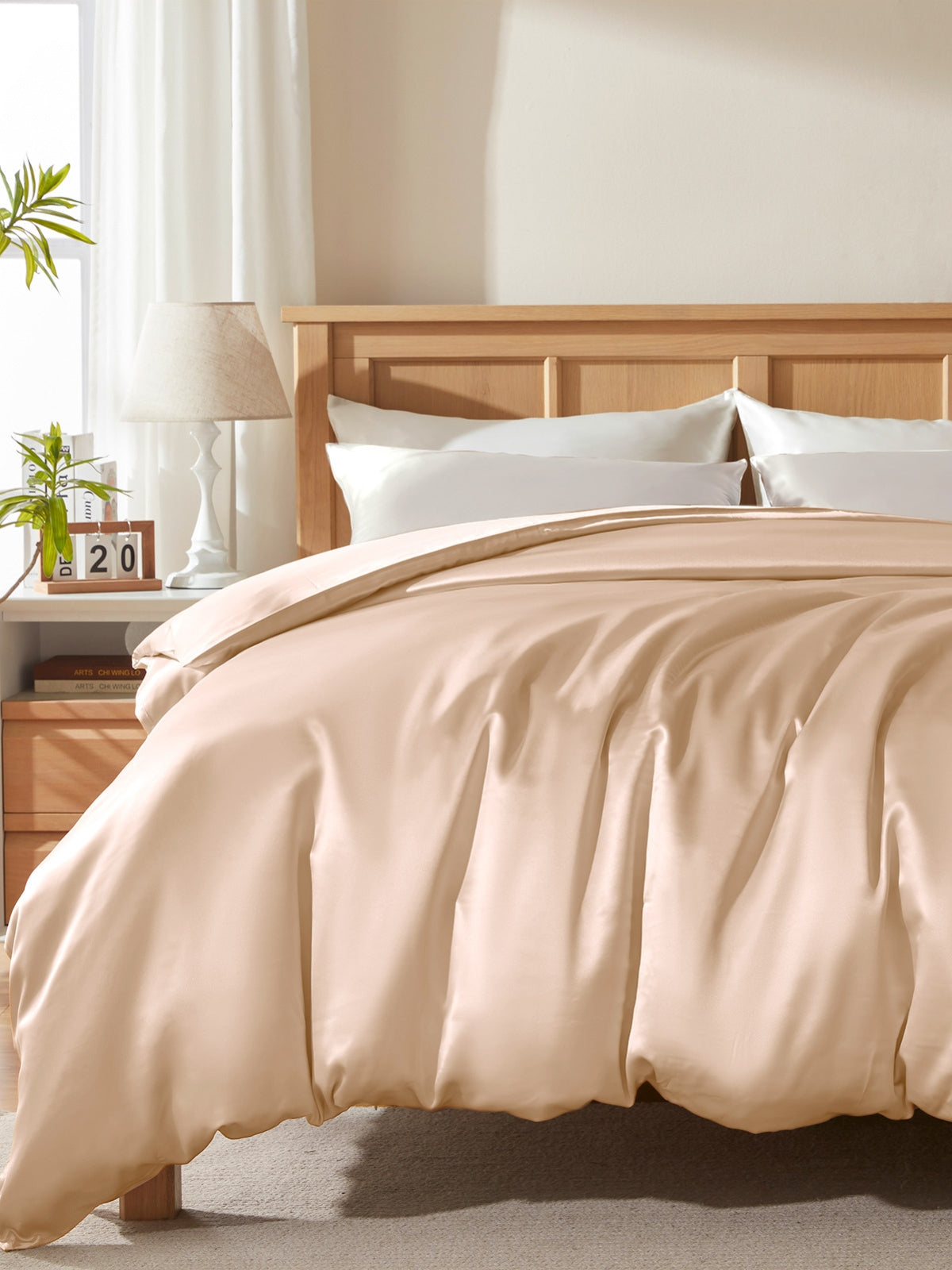 Actually the silk comforter is made from premium Egyptian cotton and 100% grade 6A mulberry silk filling.