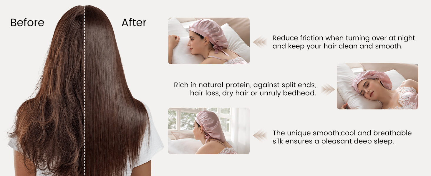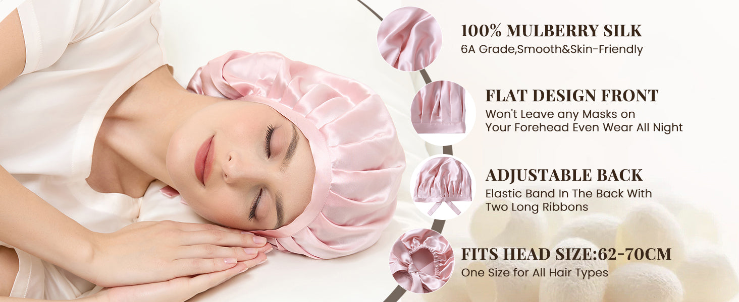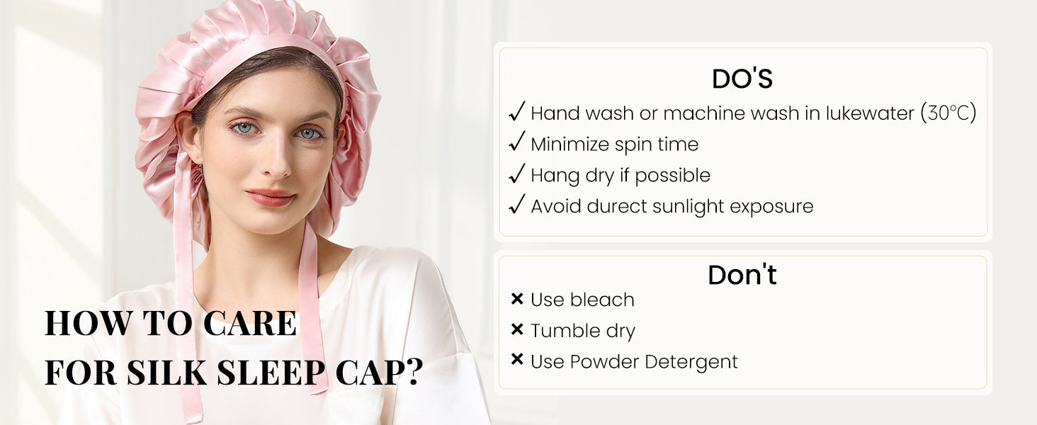 The pure silk sleep bonnet really convenient for daily use. It is a good helper when you wash your face. Not only have a sleep cap you get but also a headband. You can wear it for washing your face, making up, or bathing, or even doing the housework.
