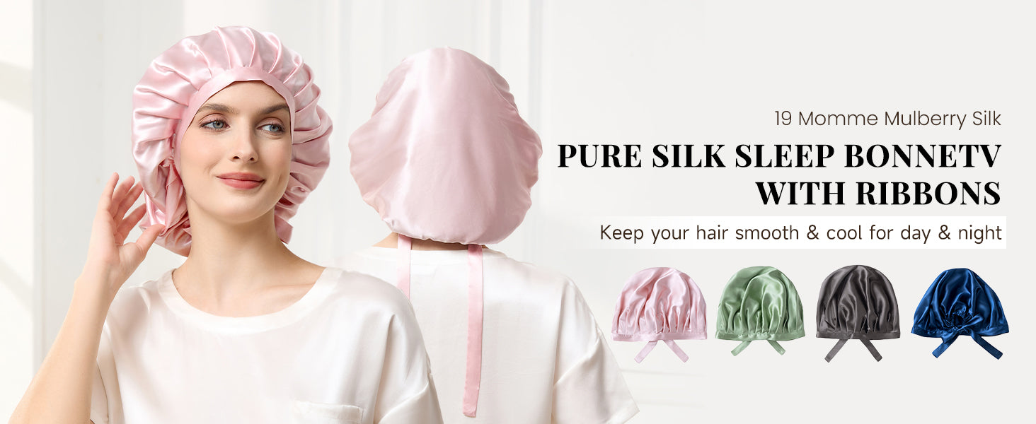 19 Momme Silk Sleep Bonnet with Elegant Ribbon Ties