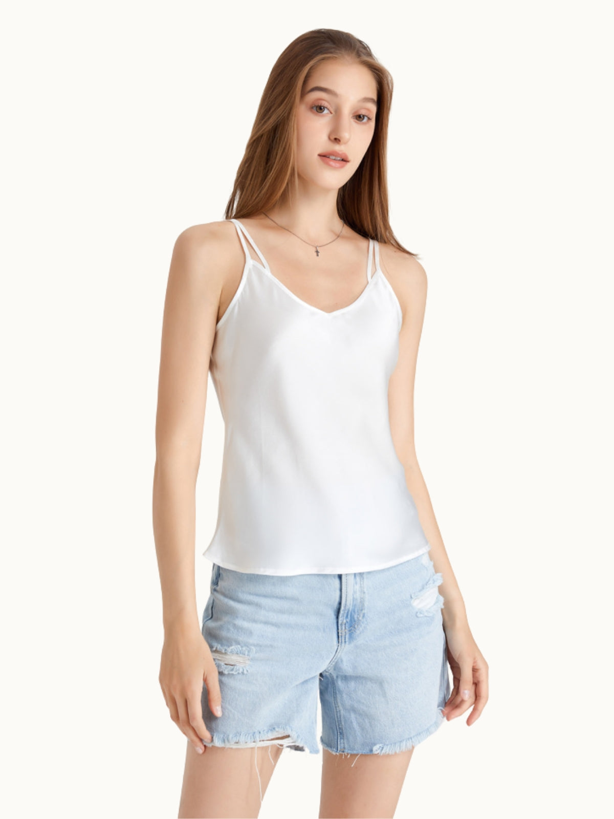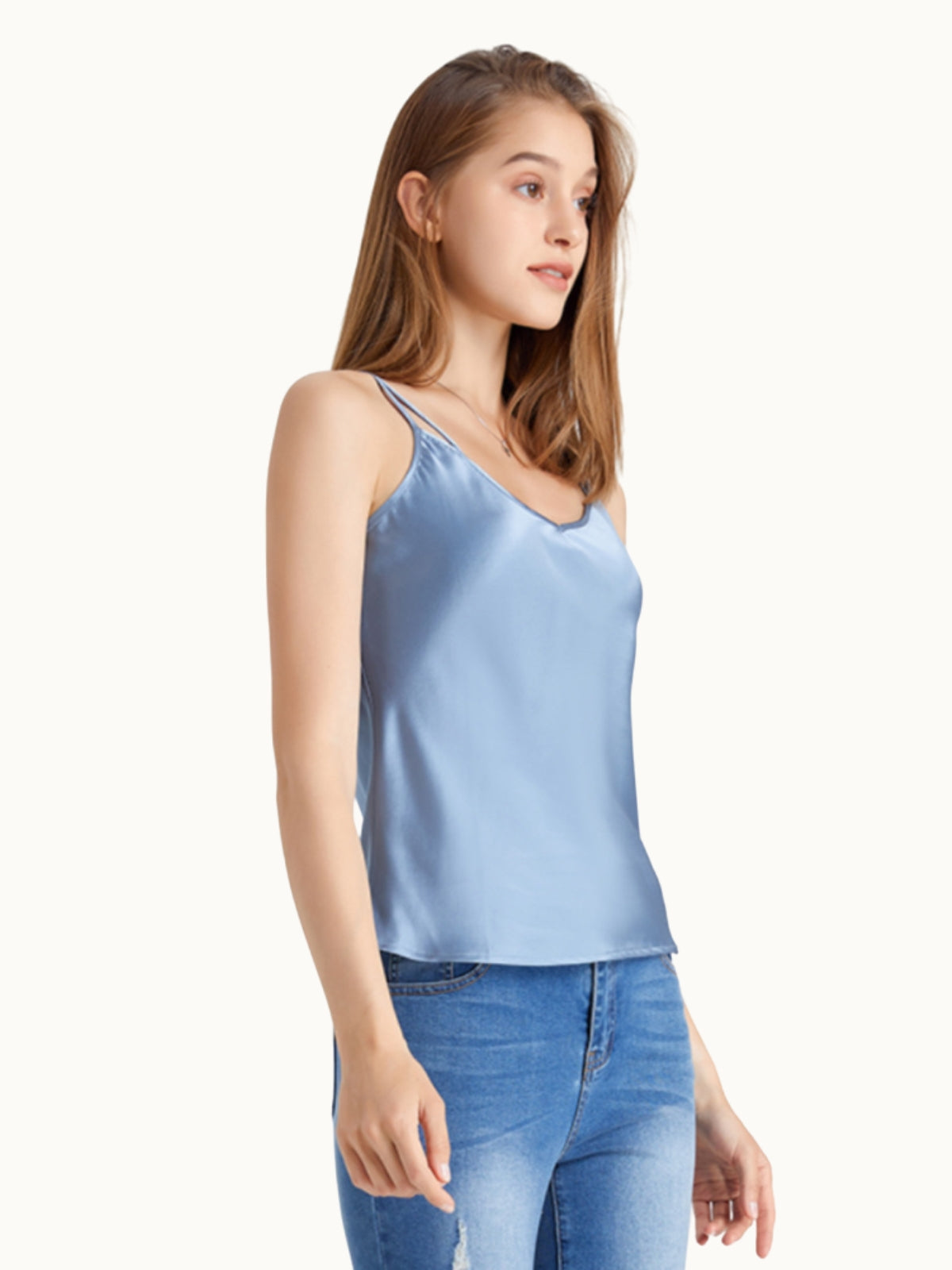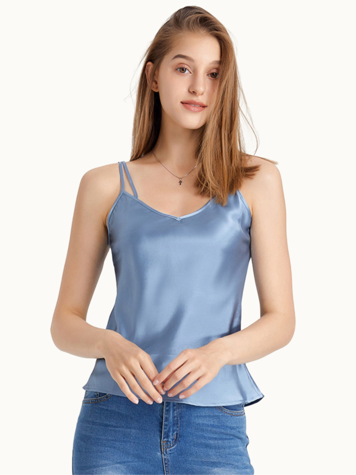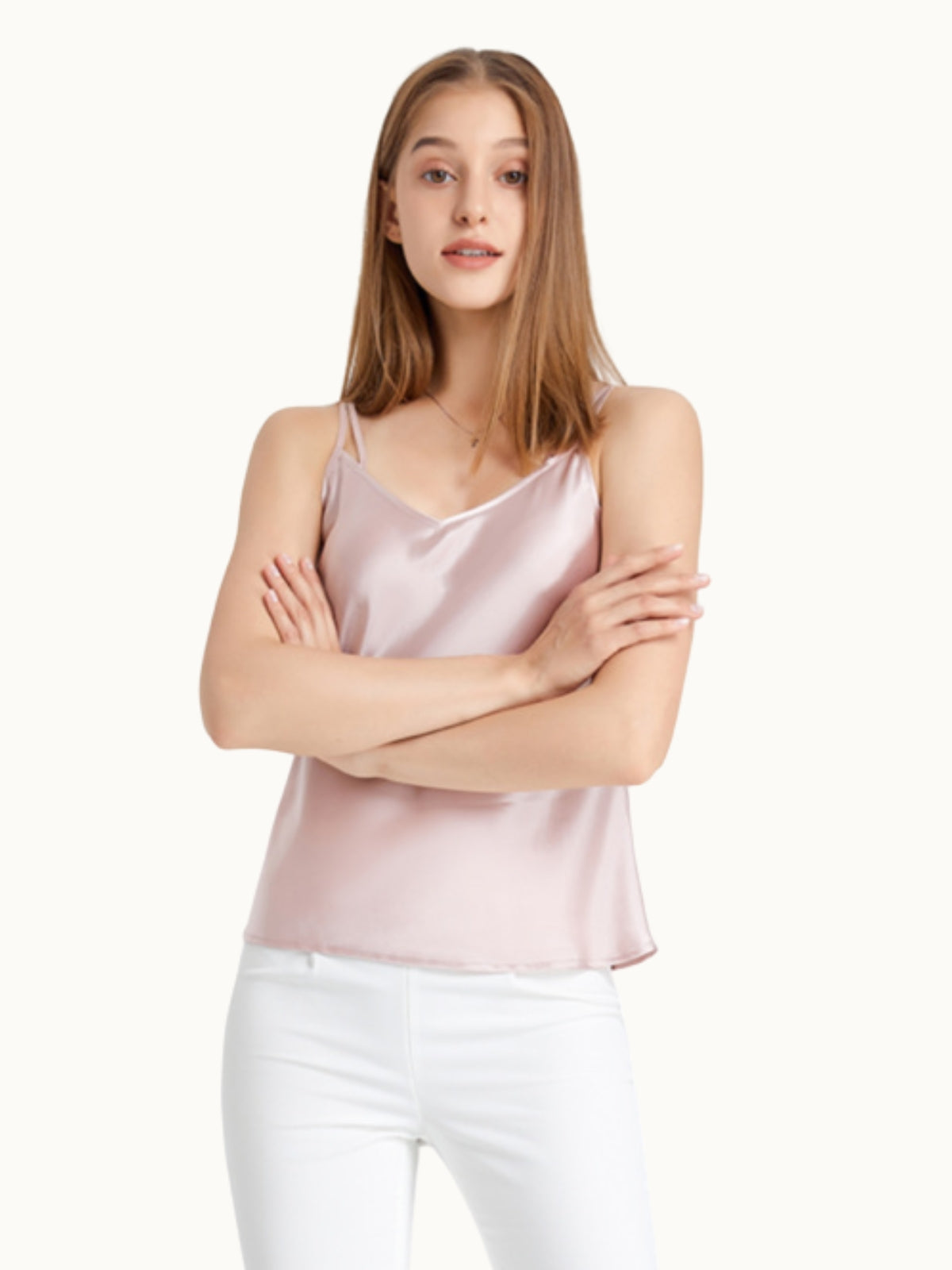 Our silk camisole top is a wardrobe essential. Made from 100% high-quality mulberry silk, this lightweight fabric has the perfect fluidity and falls softly against the skin. Accentuated with stylish adjustable straps and a v-neckline, it's an elegant choice for any occasion. Pair with jeans or our silk trousers to complete the look.