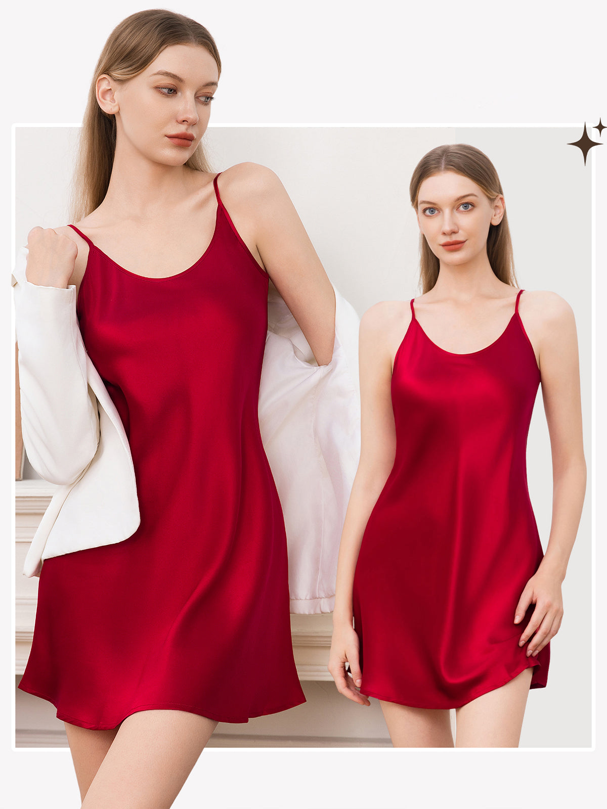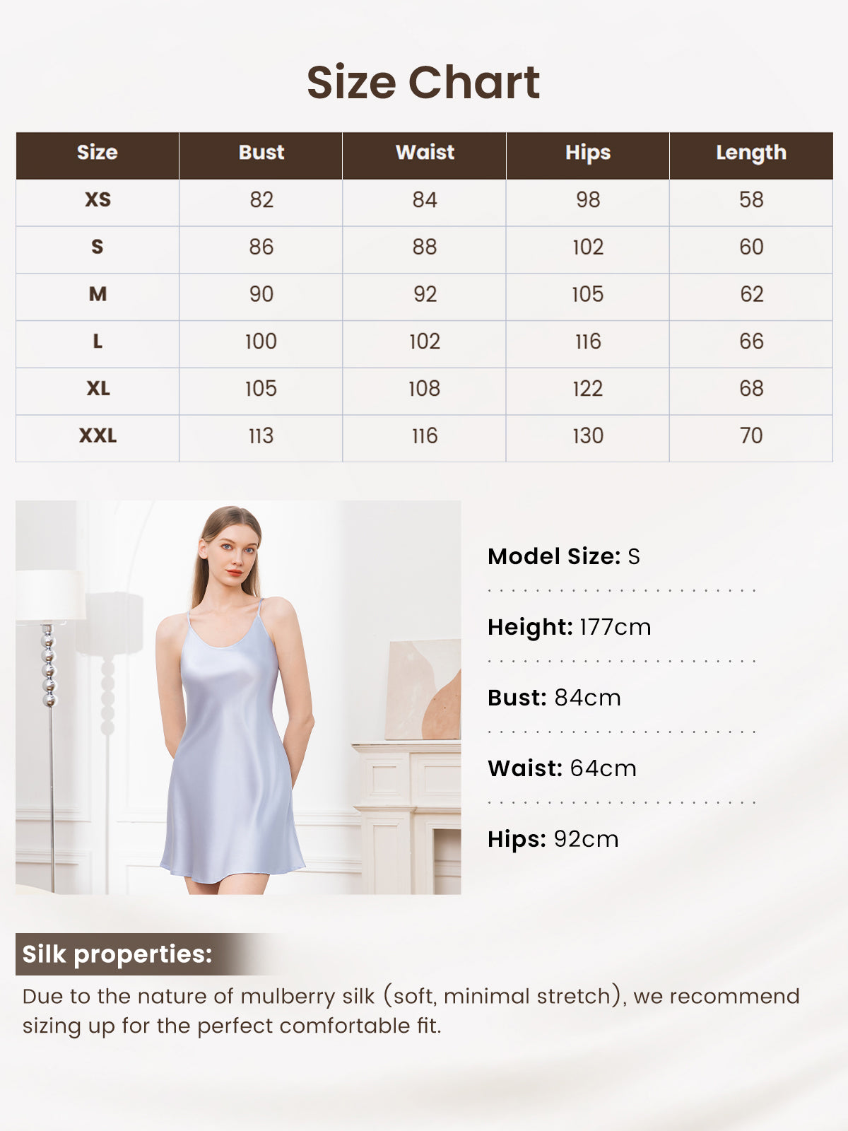 Soft and light as feathers, with exceptional cutting and adjustable shoulder straps, the silk nightgown looks elegant and better looking when wearing it. This silk dress can touch the skin directly and is very soft; you can even wear it as lounge wear. So it must be your best choice as the silk nightdress is excellent for any occasion.
