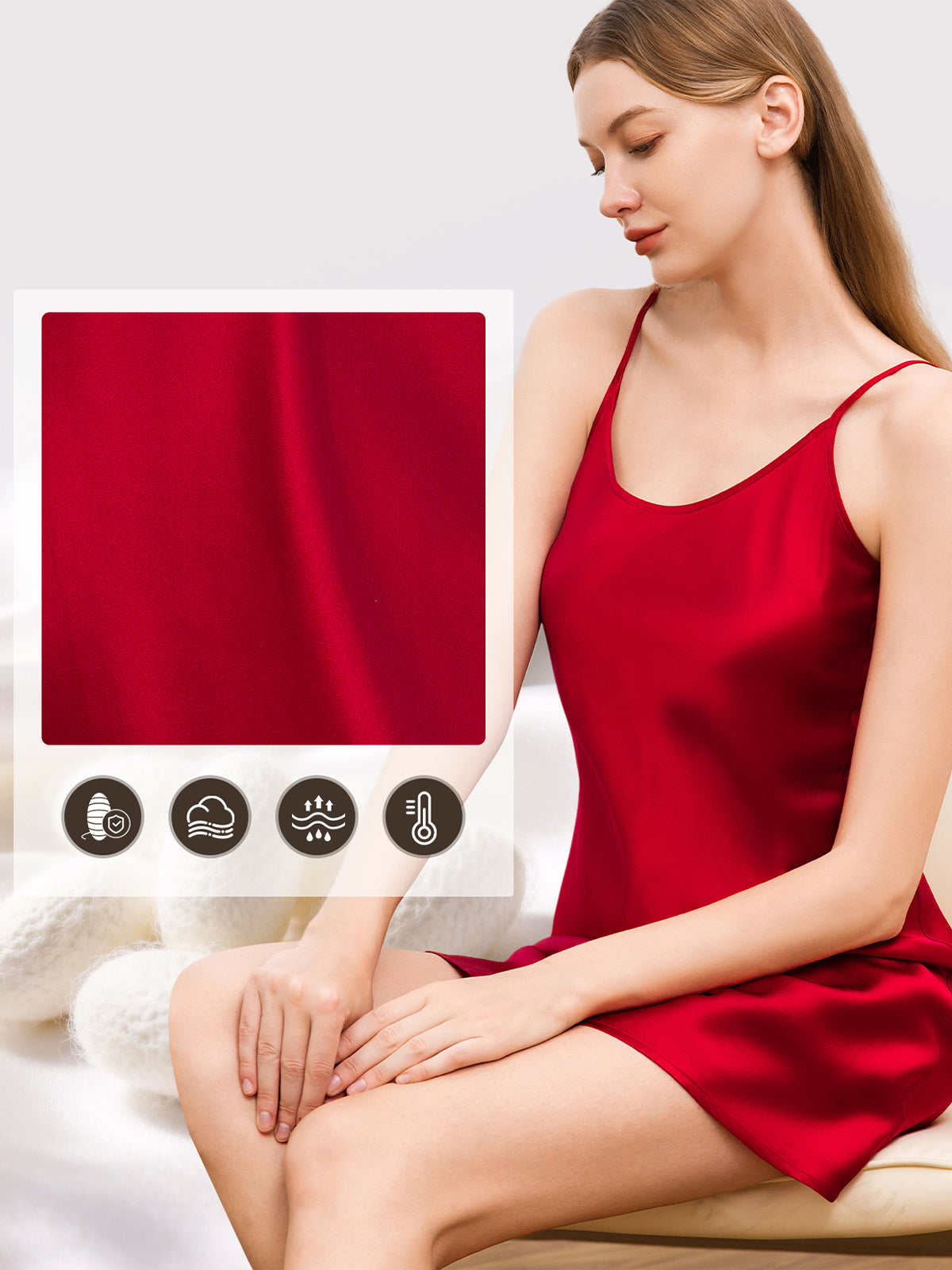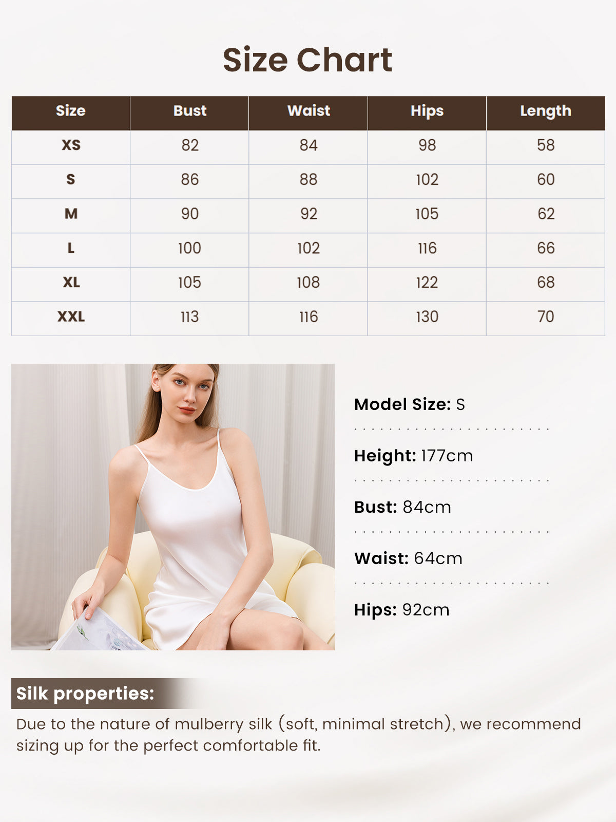 - One Piece Pure Silk Sleeveless Dress, knitting and easy to care for.