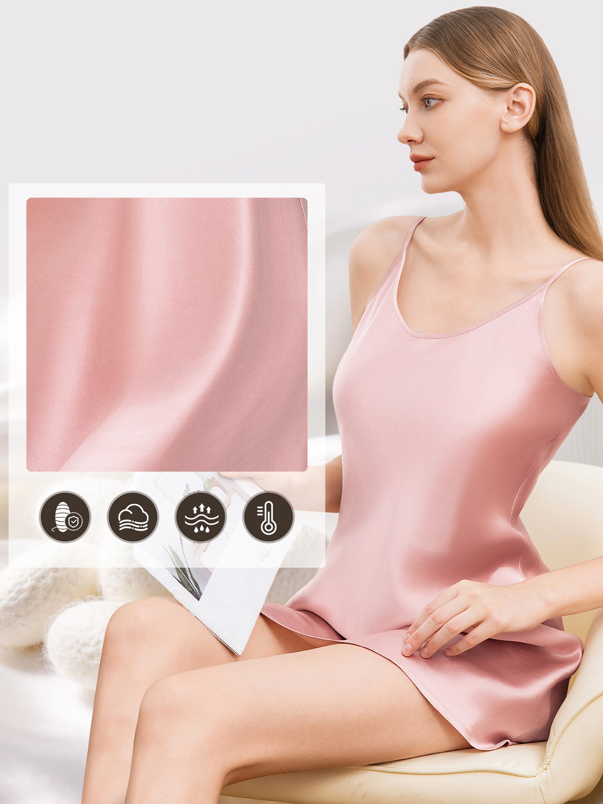 - One Piece Pure Silk Sleeveless Dress, knitting and easy to care for.